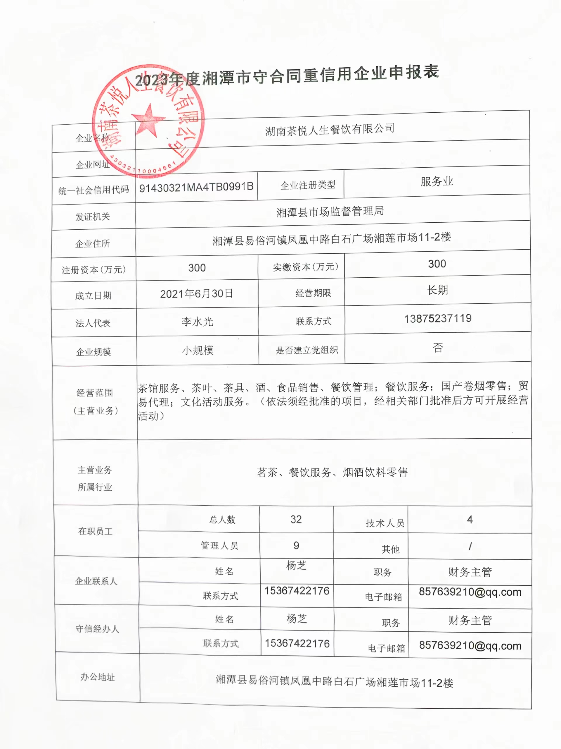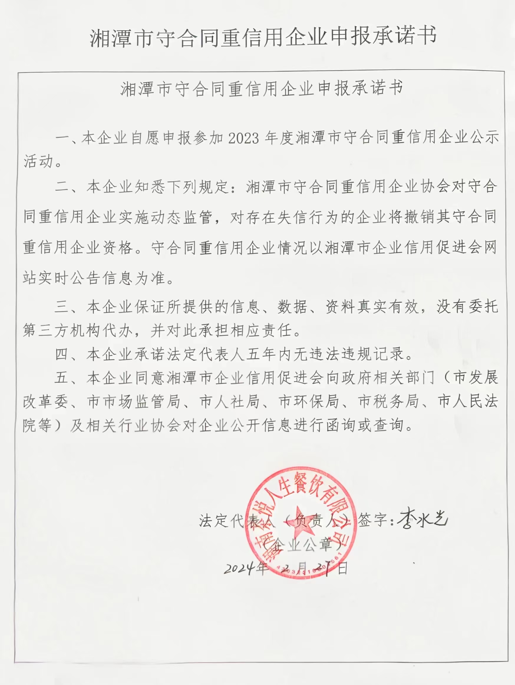本企業(yè)根據(jù)《湘潭市守合同重信用企業(yè)申報規(guī)定》等編制 2023 年度企業(yè)信用報告書,并保證本報告書內(nèi)容真實、準確、完整。