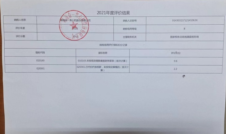 企業(yè)納稅信用等級(jí)報(bào)告:
