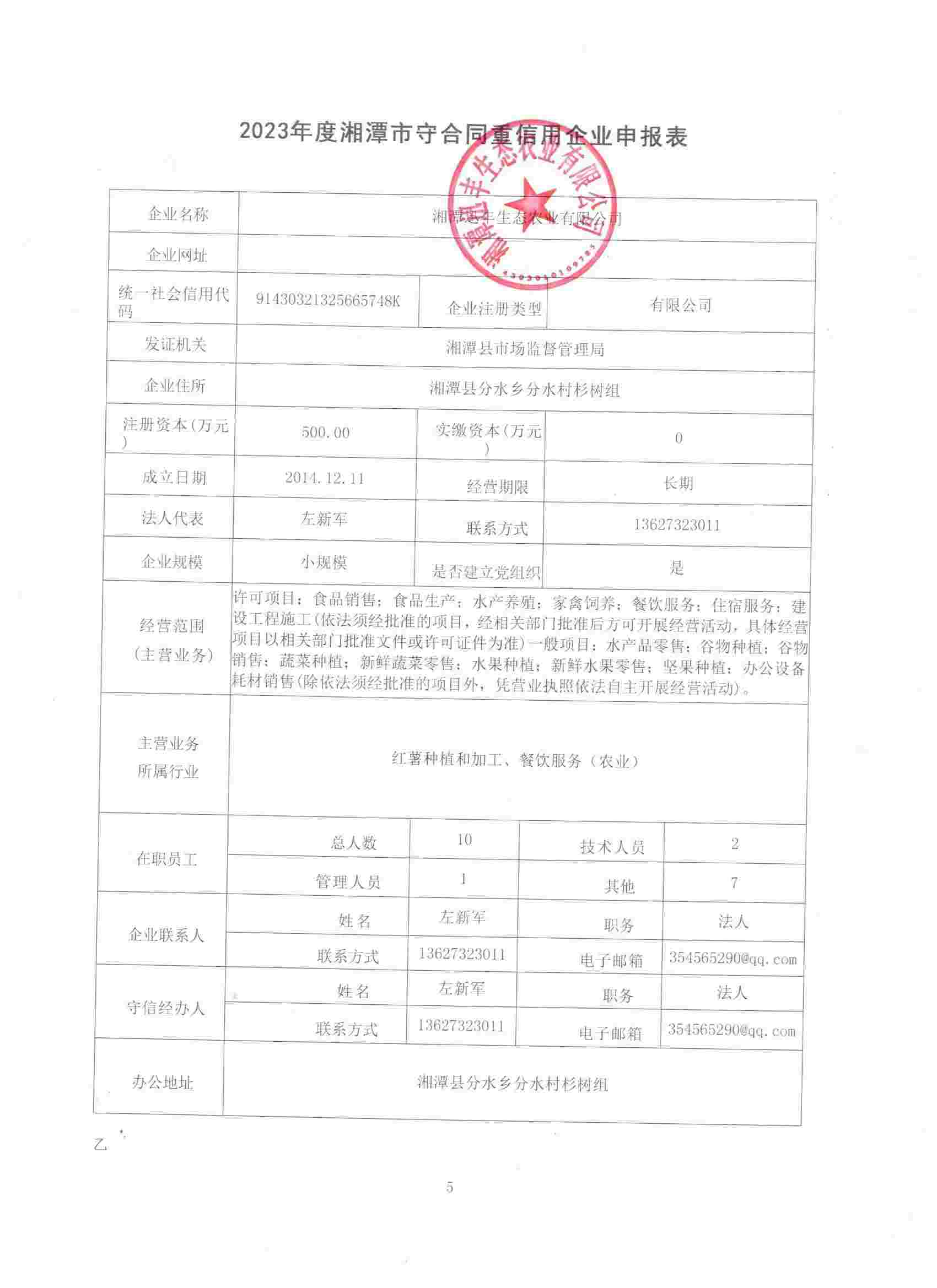 本企業(yè)根據(jù)《湘潭市守合同重信用企業(yè)申報規(guī)定》等編制 2023 年度企業(yè)信用報告書,并保證本報告書內(nèi)容真實、準(zhǔn)確、完整。